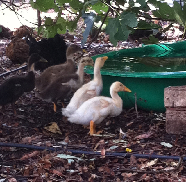 The ducklings are now in with the chooks, all seems well but they are growing so fast it seems like there are 17 of them not 7